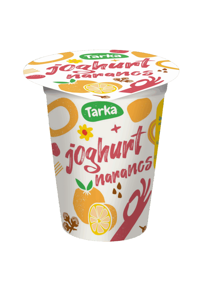 | tej, kristálycukor, víz, narancs (2%), narancslé narancslé sűrítményből (2%), sovány tejpor, savófehérje-koncentrátum, módosított kukoricakeményítő, természetes aroma, sűrítőanyag (pektinek), savanyúságot szabályozó anyagok (citromsav, nátrium-citrátok), fűszerek (0,08%), tejsavbaktérium kultúra (tejet tartalmaz), színezék (karotinok). | |